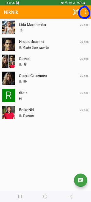 На основной странице, в правом верхнем углу нажимаем на три точки.