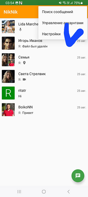 Заходим в настройки